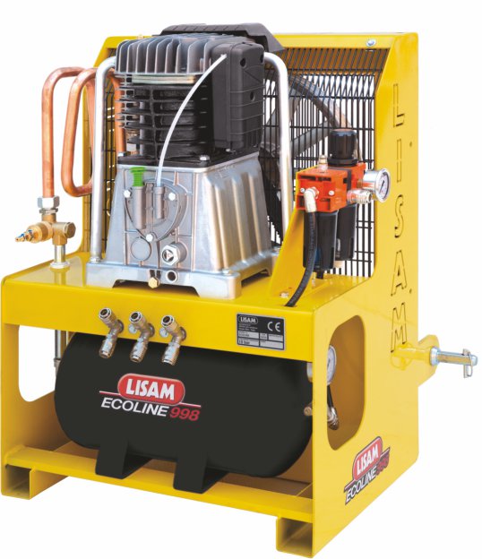 Lisam ha pensato ad una linea più economica per soddisfare una clientela più vasta. Il modello EcoLine a tre punti, realizzato con un telaio più semplice e leggero ma sempre funzionale, utilizza le parti, tipo testata, valvola e filtro lubrificatore, di tutta la gamma LISAM, rispettando in questo modo la qualità e la semplicità nei pezzi di ricambio.