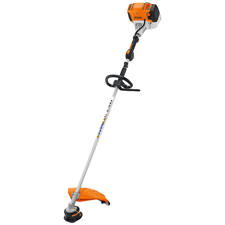 Procedura di accensione facilitata per un avviamento più comodo, impugnatura a manubrio, leva di comando con tasto di arresto, motore 4-MIX® con serbatoio più grande per tempi di funzionamento più lunghi, albero di trasmissione rigido, tracolla singola.